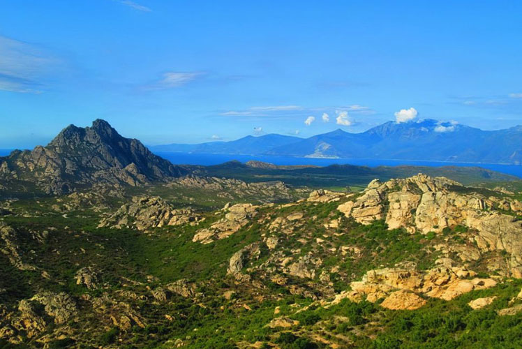 Depuis les points hauts, la vue embrasse l'ensemble du désert : au nord, la ligne bleue de la Méditerranée et parfois, par temps clair, la silhouette de l'île d'Elbe. À l'est, les reliefs du Cap Corse. À l'ouest, les montagnes de Balagne. Au sud, les crêtes intérieures de l'île. Cette position de belvédère naturel fait des Agriates un poste d'observation exceptionnel sur la géographie corse.