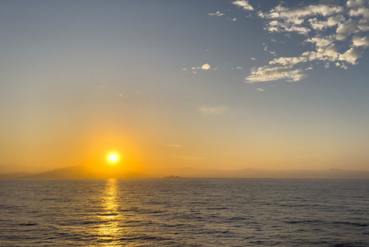 La lumière change selon les heures. Le matin, elle rase la mer en longs faisceaux dorés, révélant chaque détail du maquis. À midi, elle écrase le paysage, efface les reliefs dans une blancheur uniforme. Le soir, elle vire à l'orange puis au rouge, embrase les rochers, transforme la mer en miroir de cuivre. La nuit, l'absence totale de pollution lumineuse permet de voir la Voie lactée s'arc-bouter au-dessus du désert.